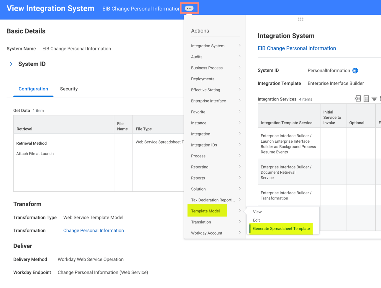 On the relevant integration system, click the related actions > Template Model > Generate Spreadsheet Template to format and upload your retiring custom object’s data into a new function of Workday.