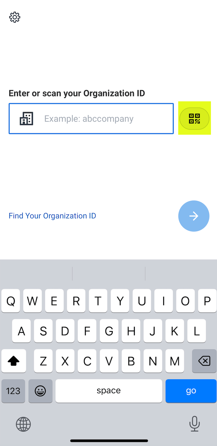 On a desktop, complete steps 1 - 2 again in the tenant you want to connect to mobile. Once you access that tenantโs organization ID and QR code, click the QR symbol below and scan the code.