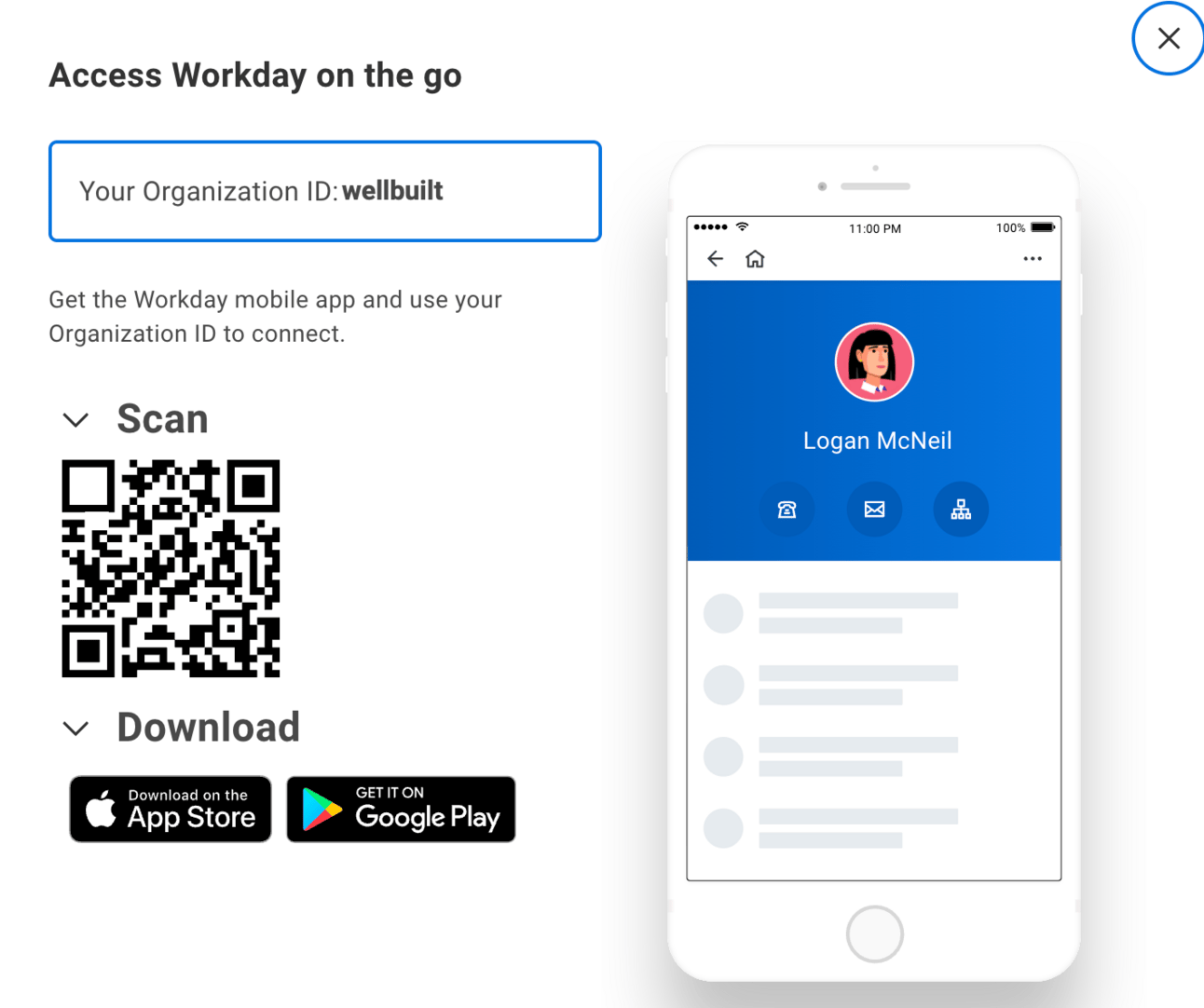Next, pull out your phoneโweโre going mobile! Download the Workday mobile app from the App store or Google Play. Click Log In.