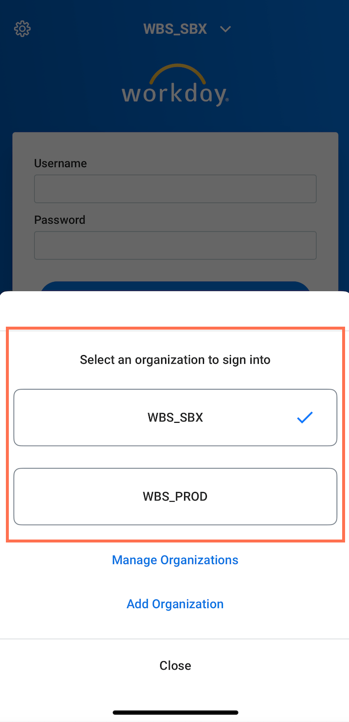 You can log into your testing tenants (e.g., Sandbox, Preview, etc.) on the Workday mobile app.