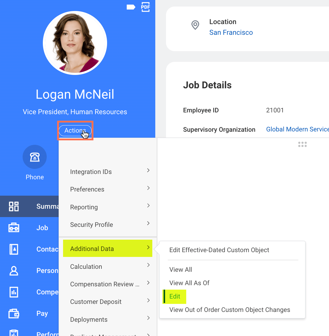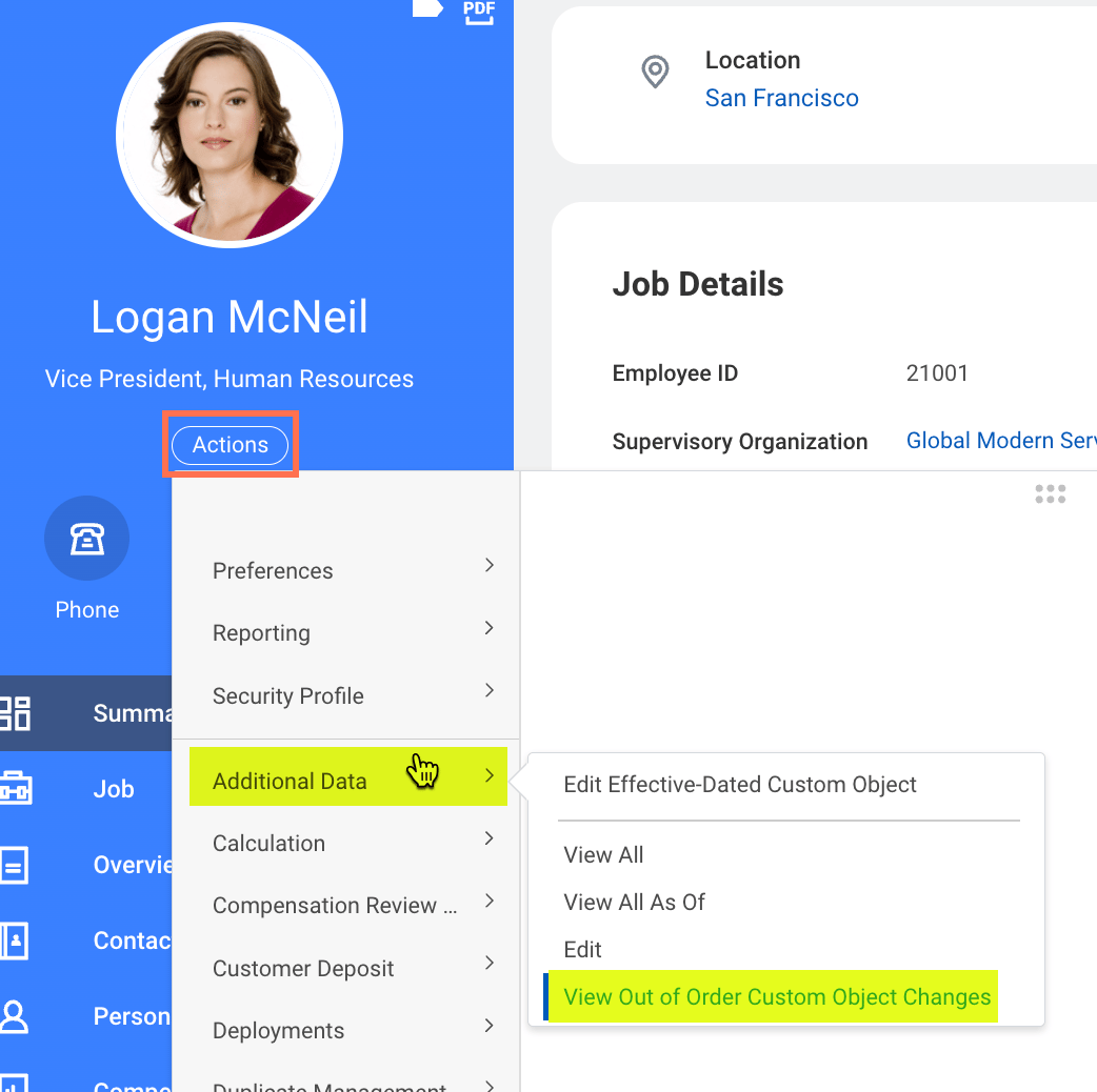 You can click the โEditโ button to edit the non-effective dated custom object directly from the Additional Data tab on the Job Profile.