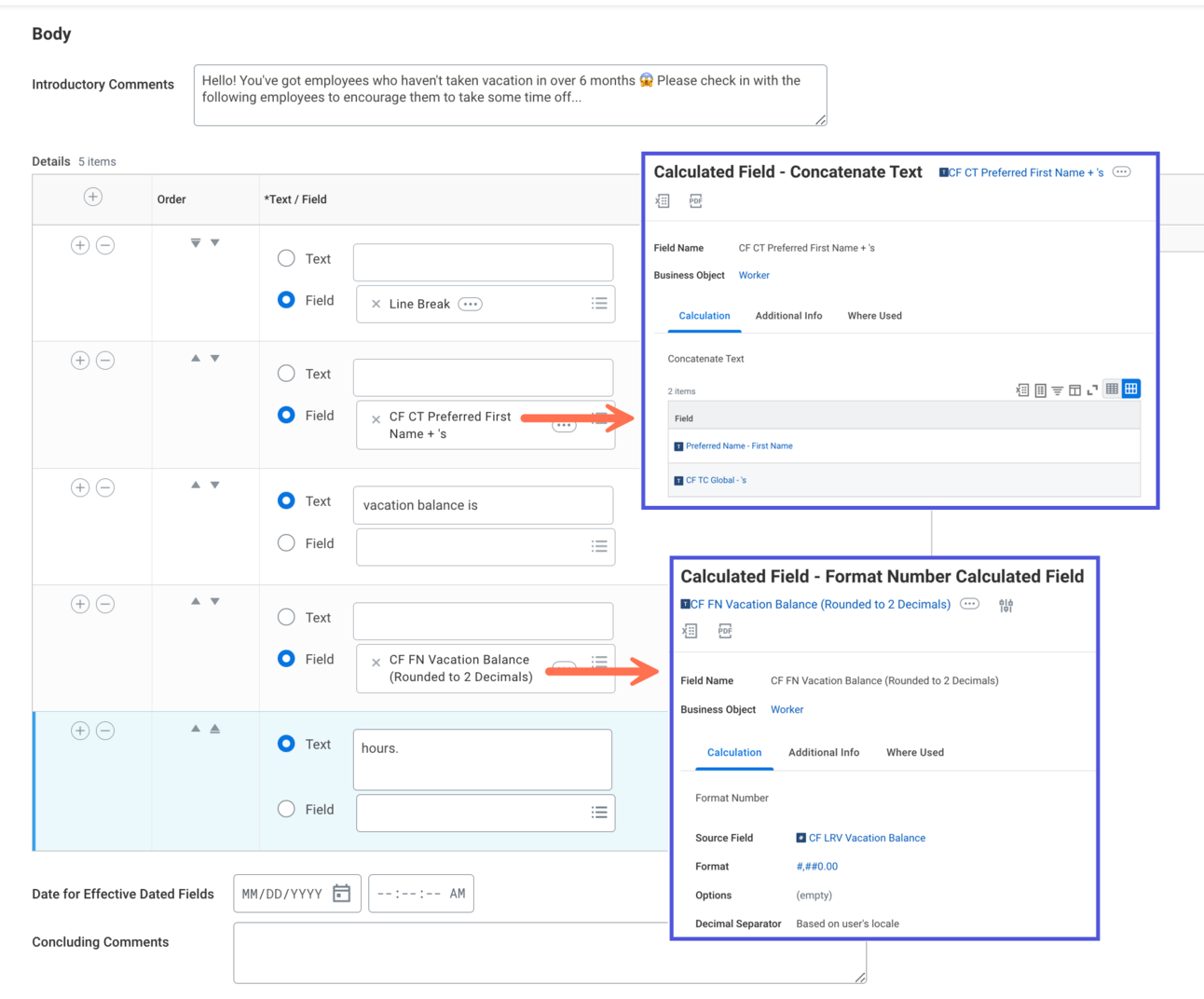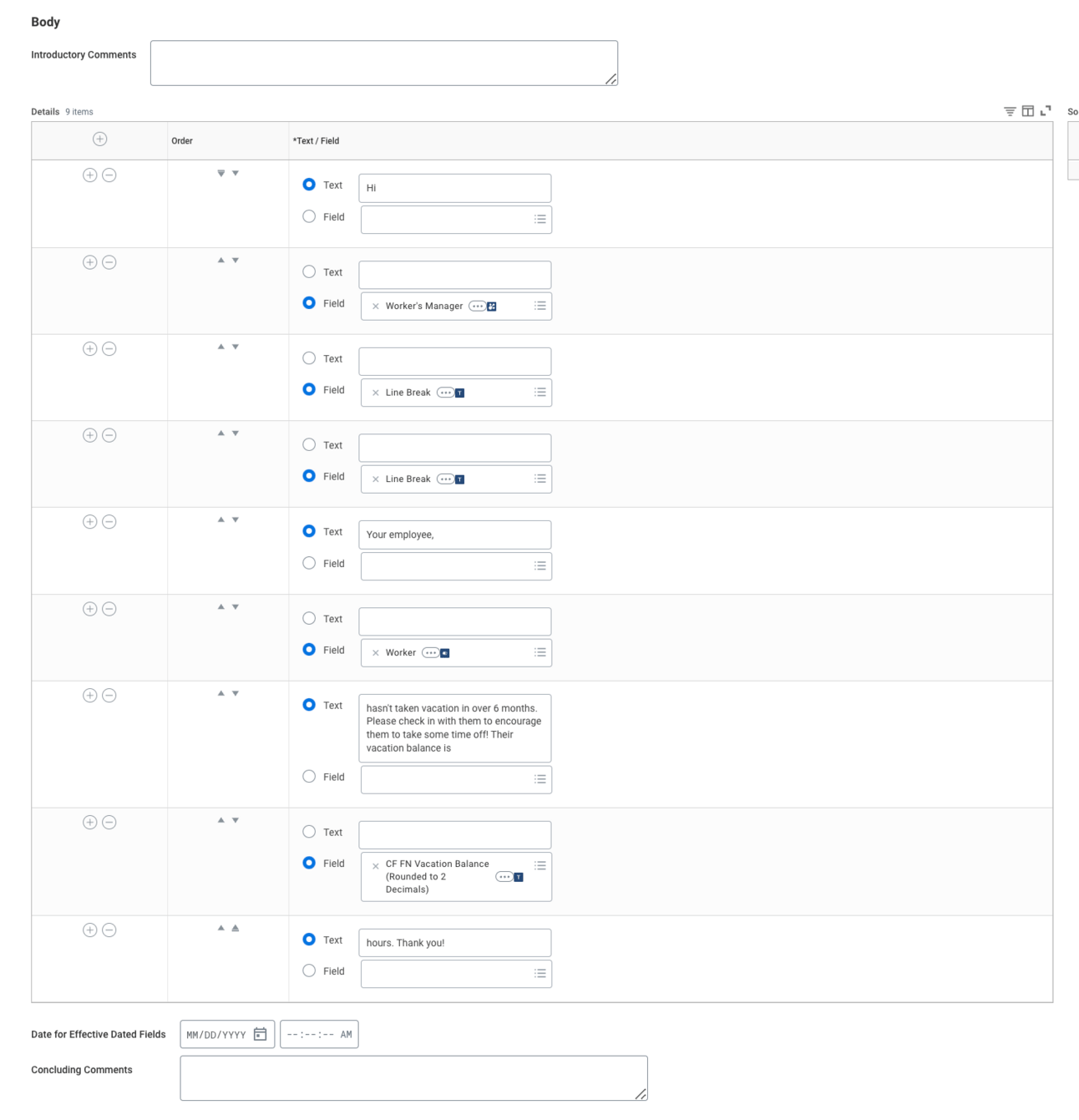 In conclusion, itโs certainly possible to make the repeating Body Details work for you rather than against you. Even without Workdayโs Notification Designer, you can achieve a substantively useful and reasonably aesthetic notification if you get your setup details right ๐