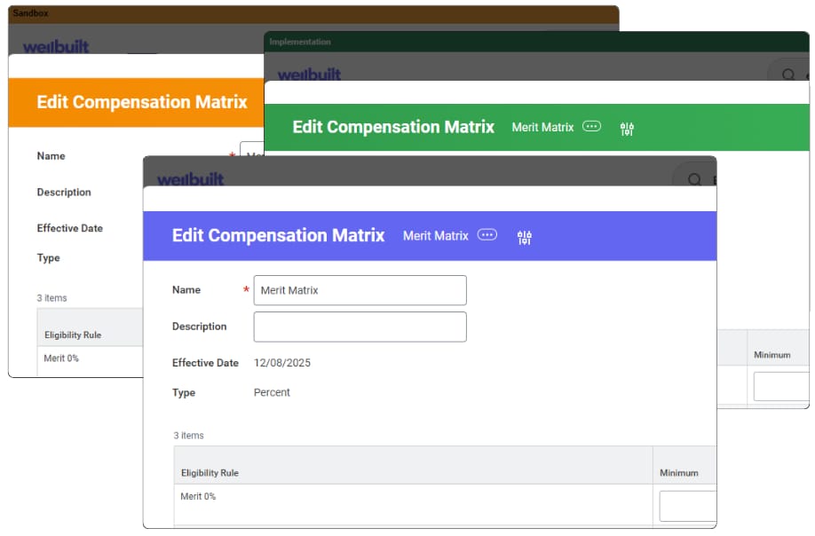 What this setup produces: When an HR Admin logs into the Sandbox tenant, the tenant color is orange, immediately reassuring you of your location.