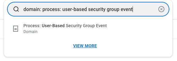 Navigate to the domain, โProcess: User-Based Security Group Eventโ. Your quickest way there is to use the prefix โdomain:โ in the search bar.