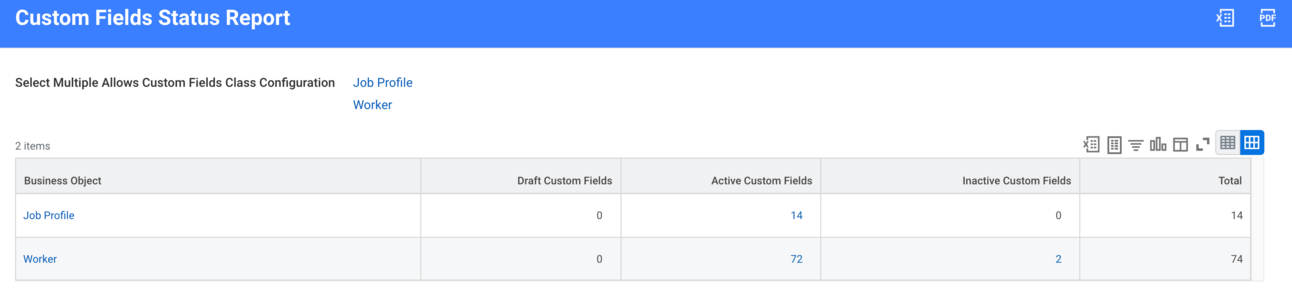 The Custom Field Status report is handy for taking quick inventory of your custom field counts and statuses per business object.